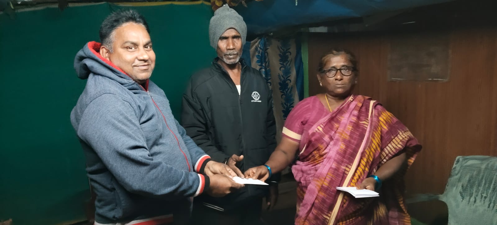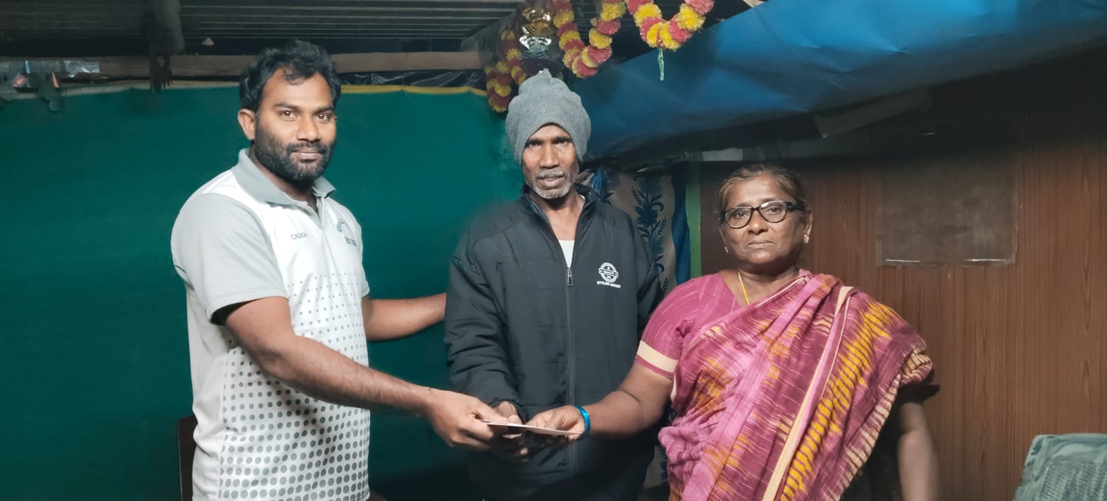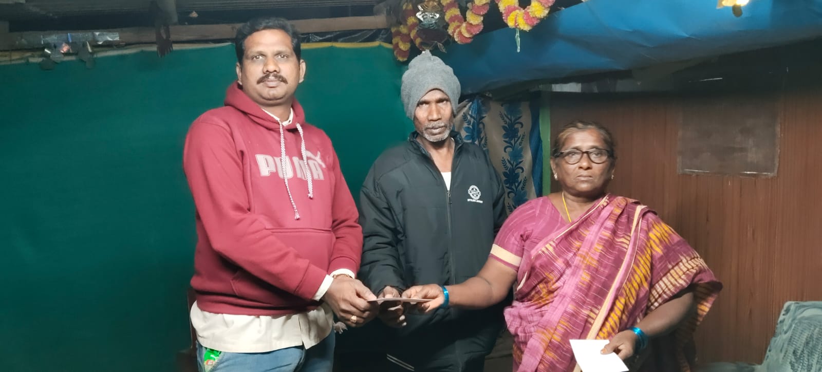 Der Tod eines Menschen ist immer ein tragischer Einschnitt im Leben der Hinterbliebenen. Oftmals ist er verbunden mit finanziellen Schwierigkeiten, mit denen die Familie dann zu kämpfen hat. Mit INR 10.000,- haben wir der Ehefrau und dem Sohn ein wenig helfen können. Yesupadem und Meramma Talluri überreichten der Witwe den Betrag.